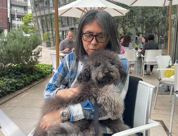 【写真】六本木ヒルズ下のカフェ・テラス席で愛犬とのツーショット