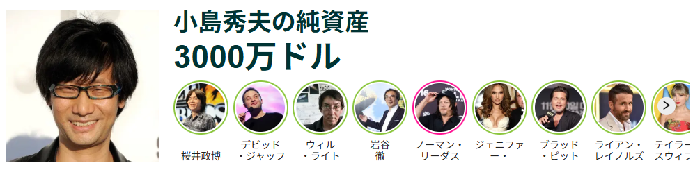 【写真】小島秀夫の純資産3000万ドル(www.celebritynetworth.com)