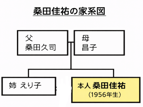 父親・桑田久司さん、母親・昌子さん、姉・えり子さん、本人・佳祐さんです。
