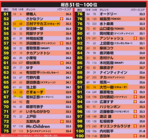 さぁまーずの2人は、2014年にタレントパワーランキング14位(過去最高位)でした。