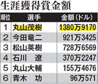 【写真】アメリカツアーでの生涯獲得賞金額@2015年時点
