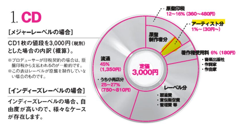 アーティスト印税(歌唱印税)の相場は1~3%。