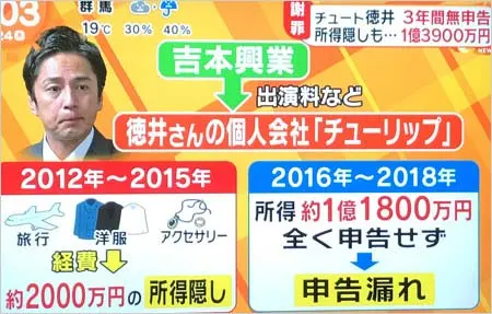 徳井義実さんは、2019年10月に、高額な所得隠しを指摘されました。