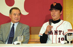 【写真】ドラフト1位で巨人に入団する上原選手@1998年