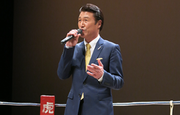 【写真】プロボクシングの試合で熱唱する山崎ていじさん@2014年
